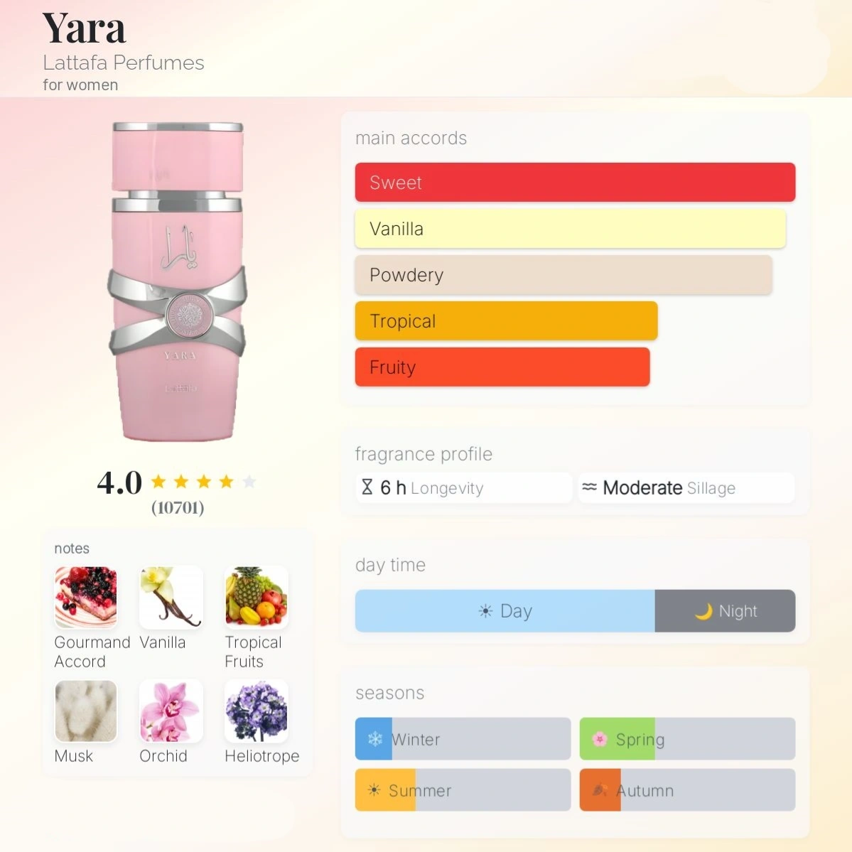 Yara Lattafa Perfume is a floral, fresh, and woody fragrance that:
