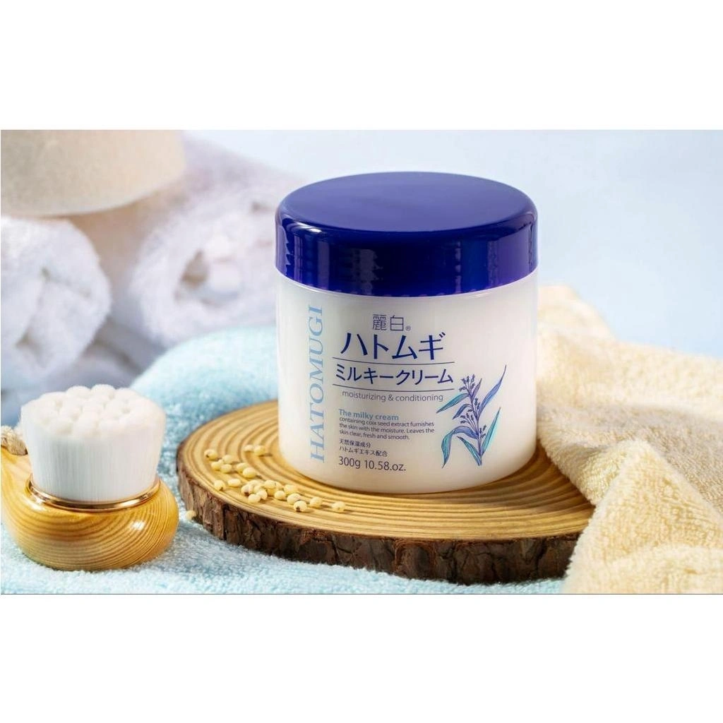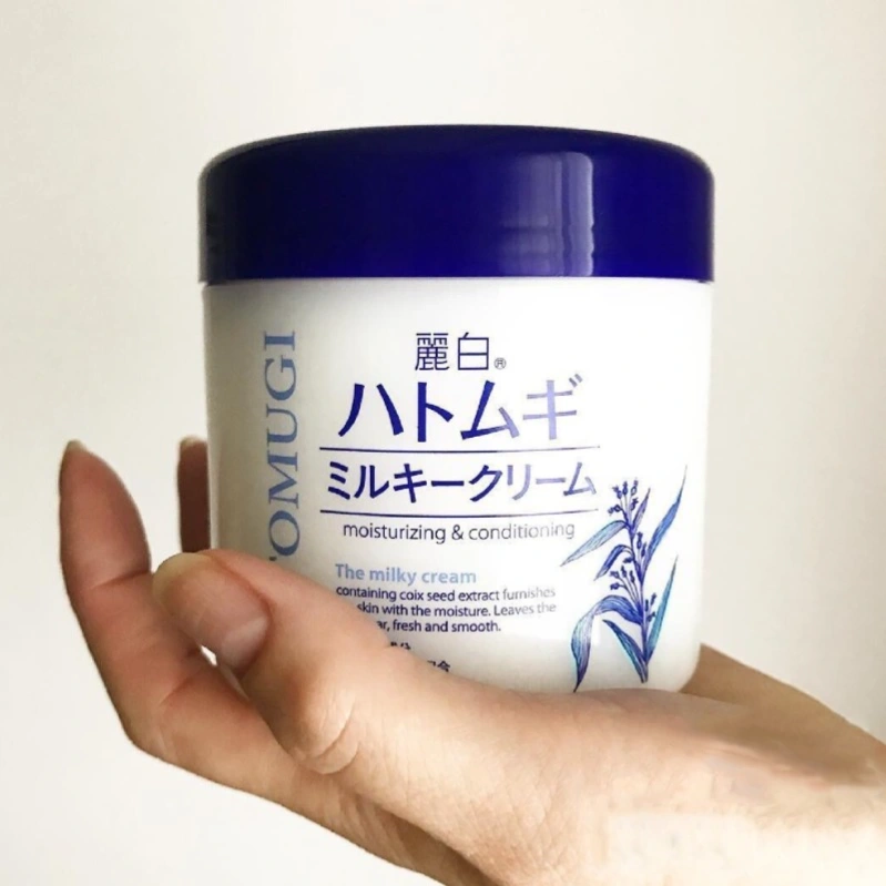 Milky cream containing natural moisturizing ingredient Coix seed extract.